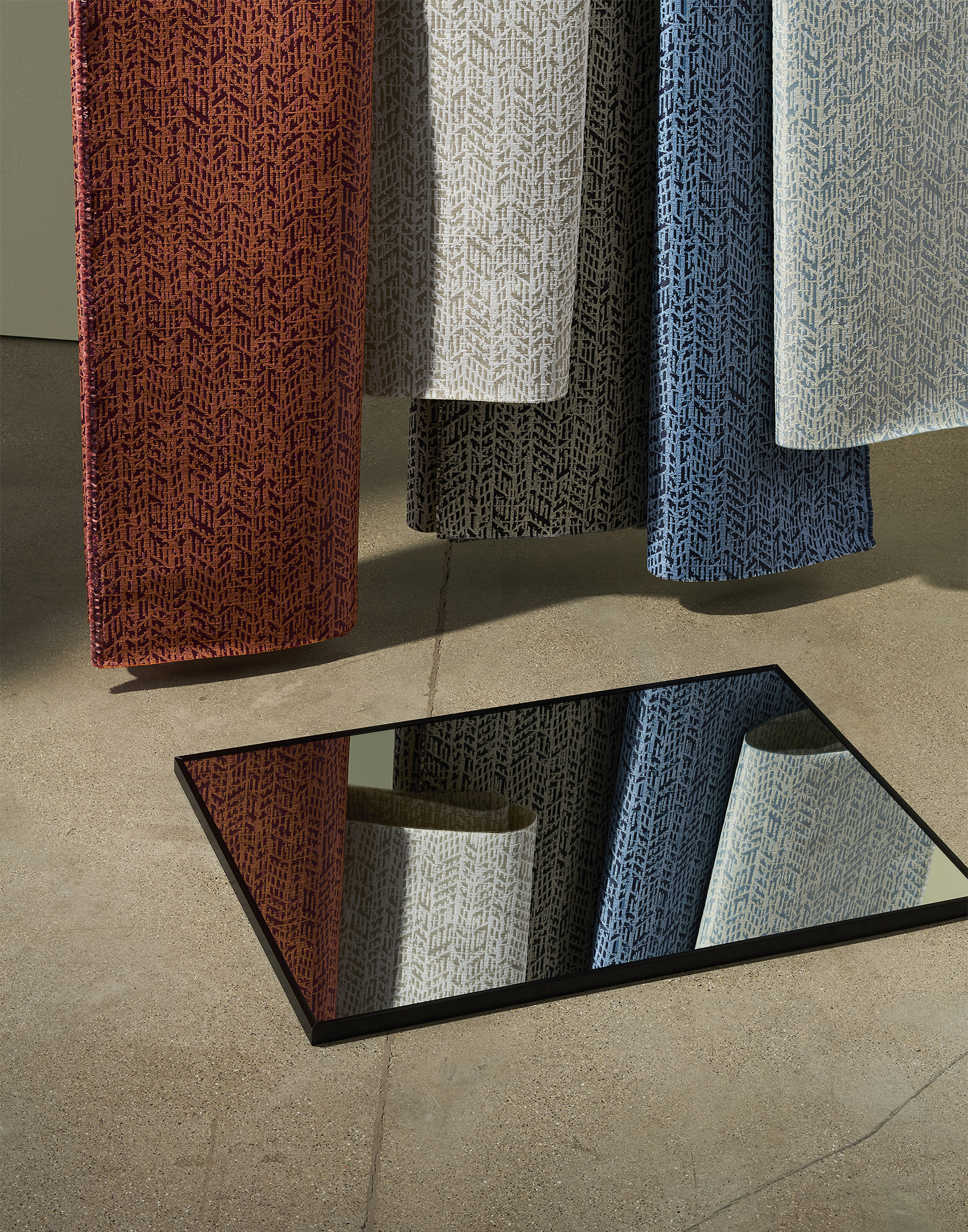 Discover a textural collection of effortlessly curated fabric and wallpaper, revealing print fabrics, weaves, moirés and wallcoverings, designed in collaboration with Henry Holland. Cocoon interiors in organic forms and earthy colour combinations.